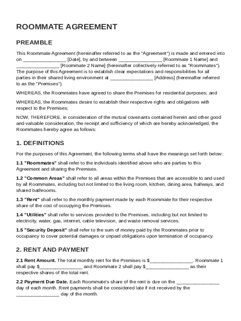 Financial agreements are pivotal in any roommate relationship. They include details about rent payments, utility costs, and deadlines for payments. Clarifying these elements helps to ensure everyone is on the same page and prevents disputes over financial responsibilities.
