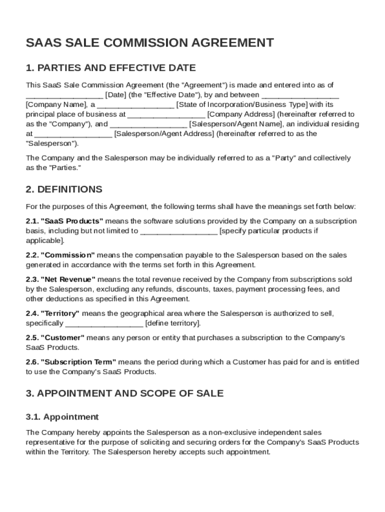 SaaS Sale Commission Agreement Template free printable template