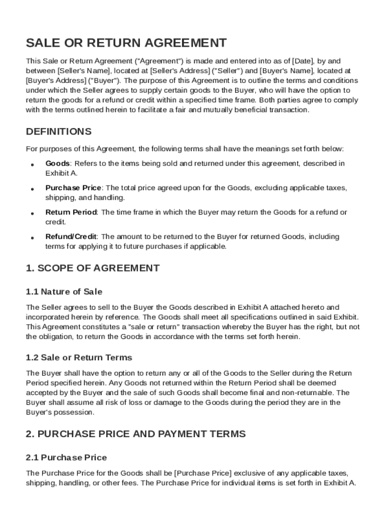 This section defines the essential components of a Sale Or Return Agreement, which may include:
