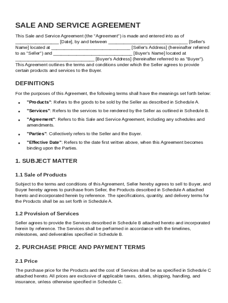 What is Sale and Service Agreement Template