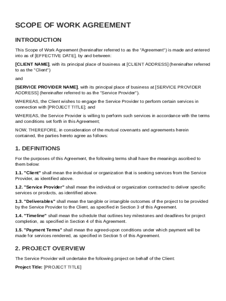 What is Scope of Work Agreement Template