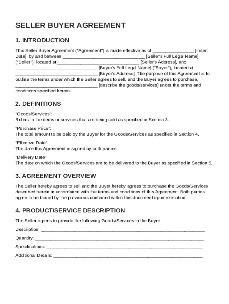 A Seller Buyer Agreement Template is a legal document that outlines the terms and conditions agreed upon by a seller and a buyer in a transaction.