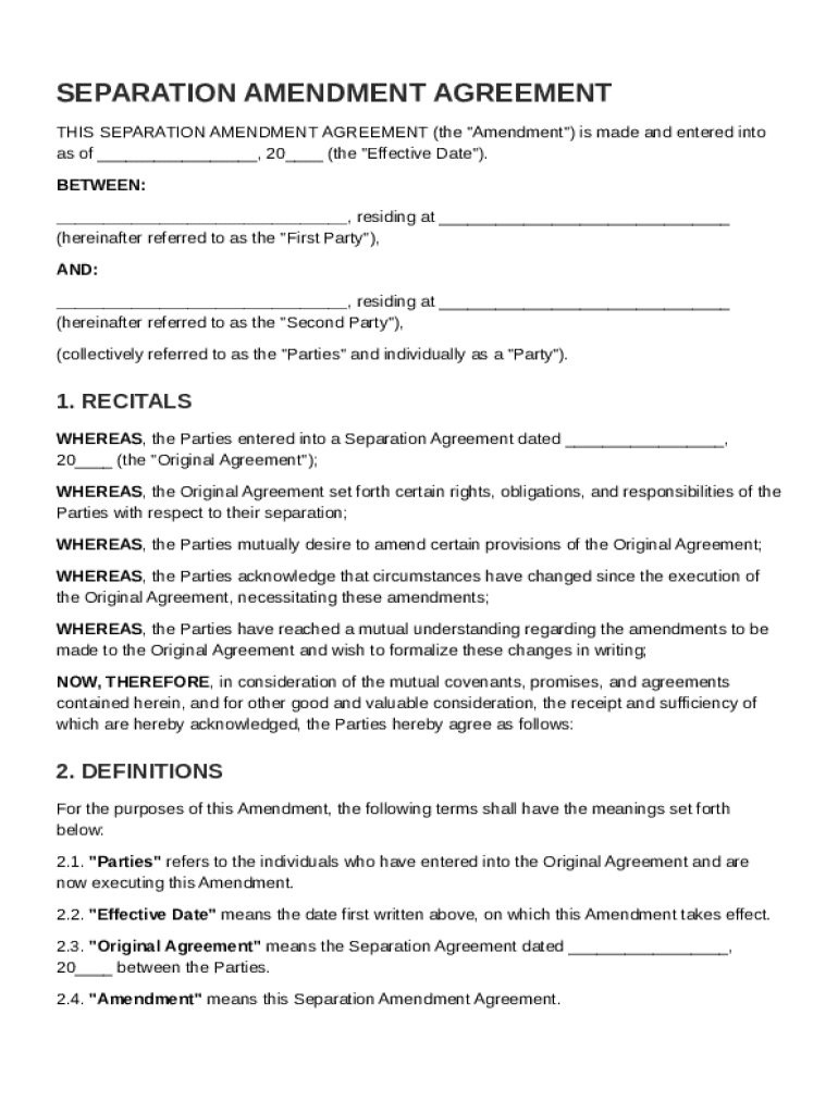 Understanding the structure of the Separation Amendment Agreement is important. Here are the primary sections typically included: