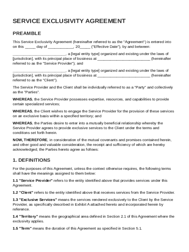 Service Exclusivity Agreement Template free printable template