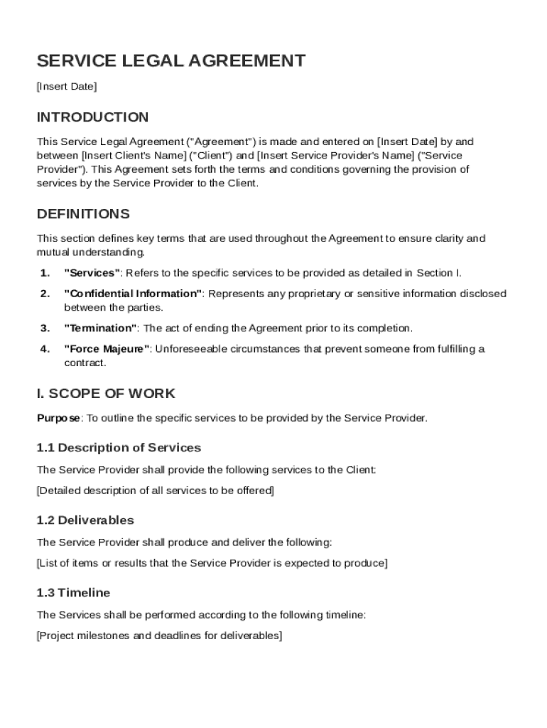 A Service Legal Agreement Template is a formal document outlining the terms of service between a provider and a client.