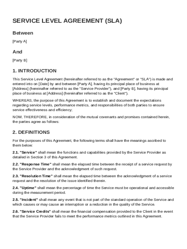 What is Service Level Agreement Template