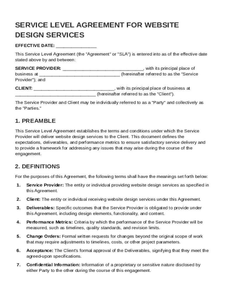 Comprehensive Guide to Service Level for Website Design Agreement Template Form
