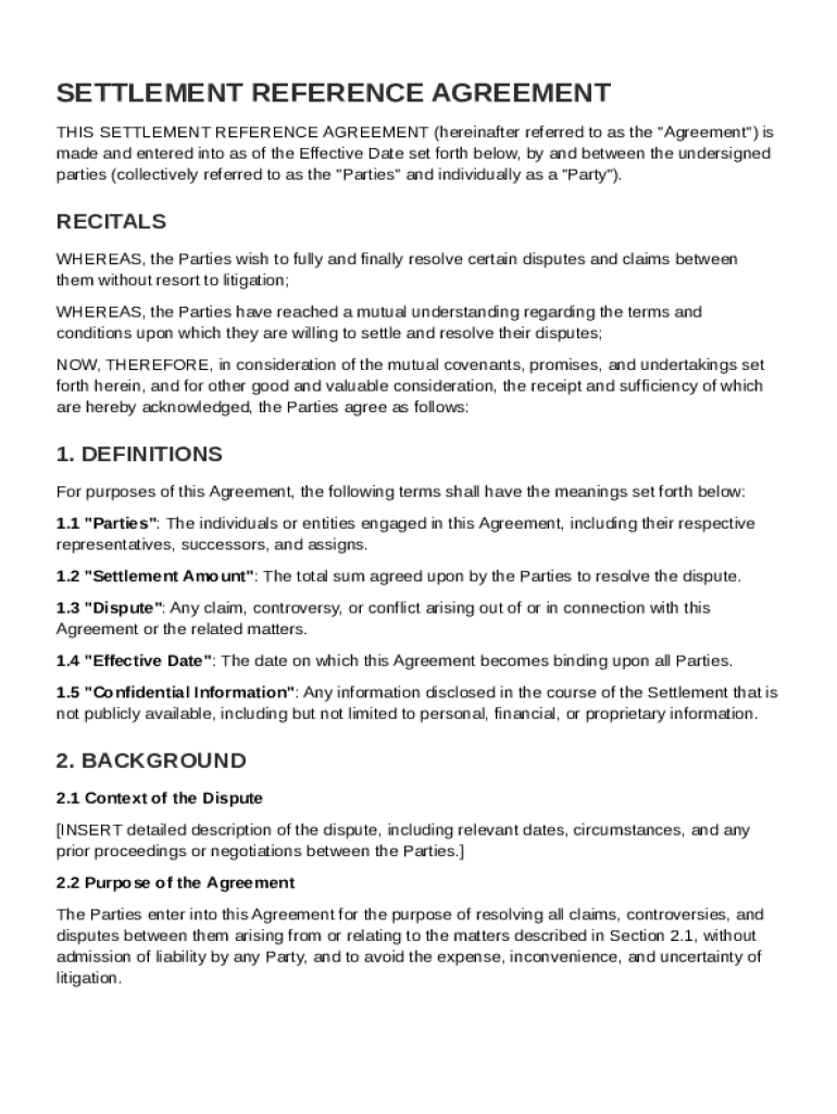 Comprehensive Guide to Settlement Reference Agreement Templates