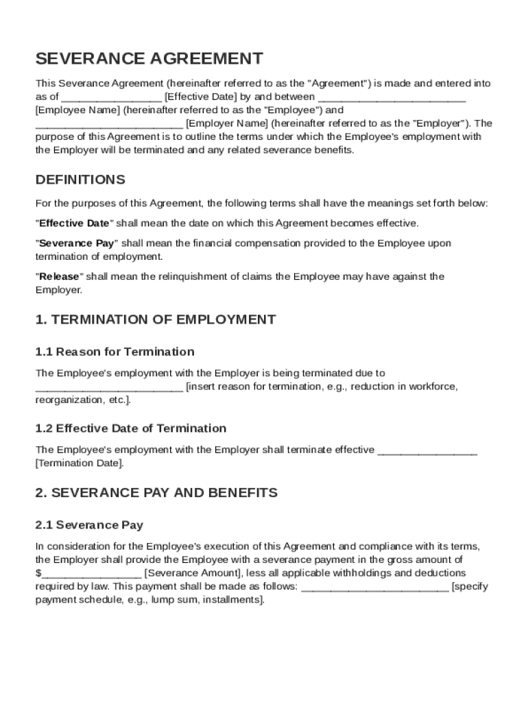 A sample severance agreement template can provide a useful starting point for creating a customized agreement. Templates often include predefined fields for easy modification.