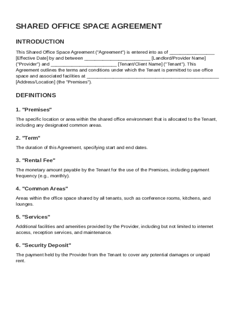 Comprehensive Guide to Shared Office Space Agreement Template on pdfFiller