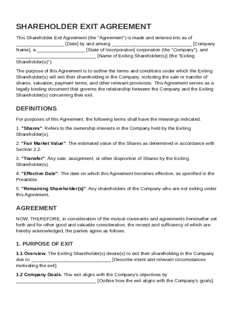 What is Shareholder Exit Agreement Template