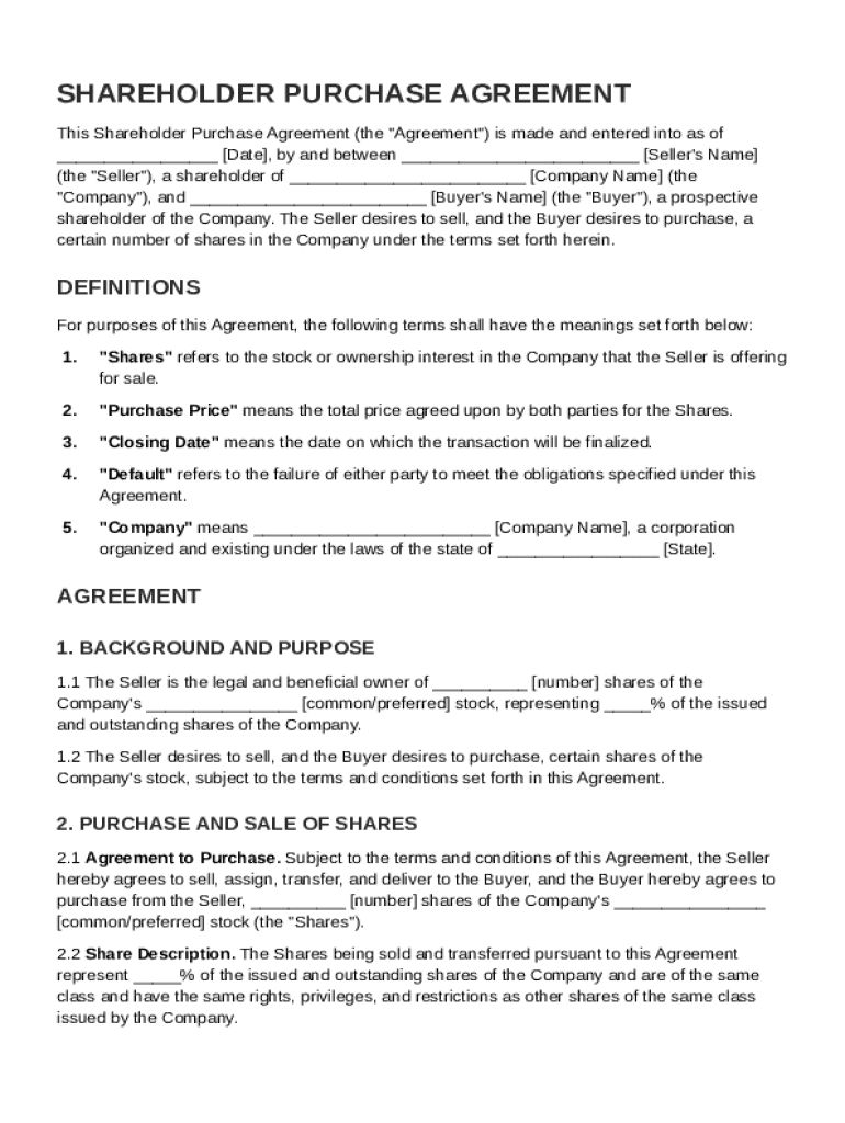 What is Shareholder Purchase Agreement Template