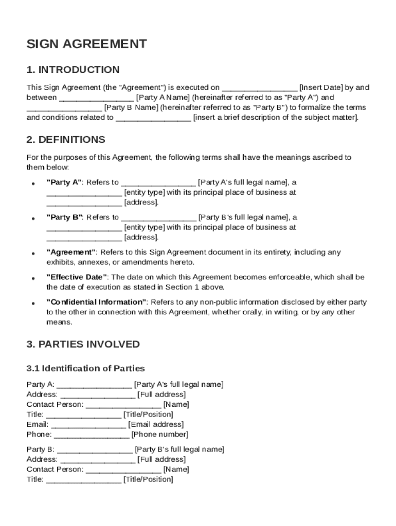 Every Sign Agreement Template form includes crucial components that establish roles, responsibilities, and the framework of the agreement itself. Understanding these components is vital to creating a legally binding and functional document.