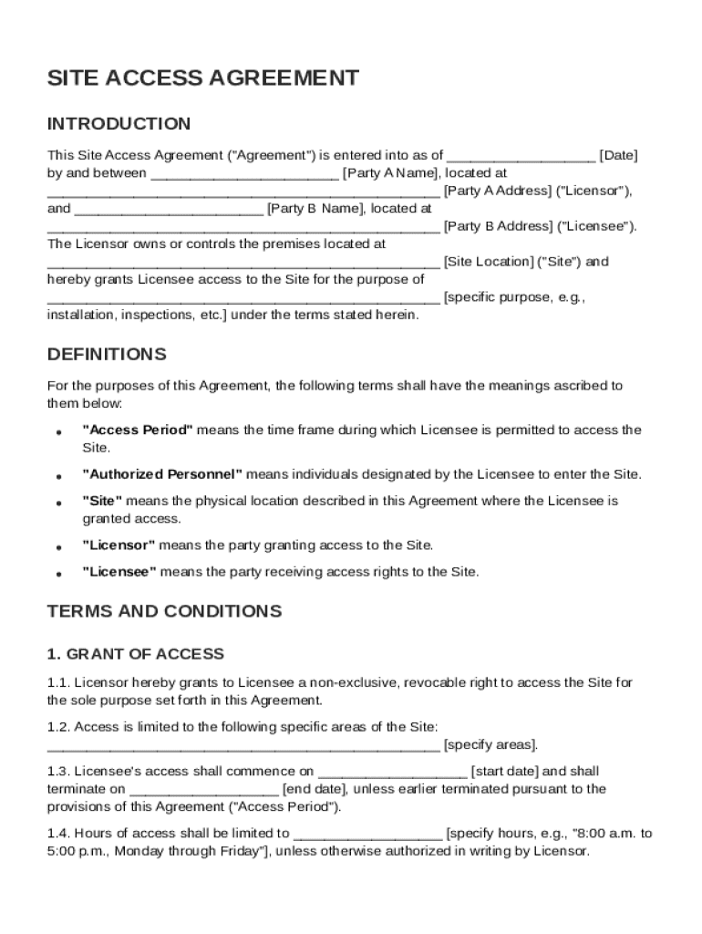 Comprehensive Guide to Site Access Agreement Template Form