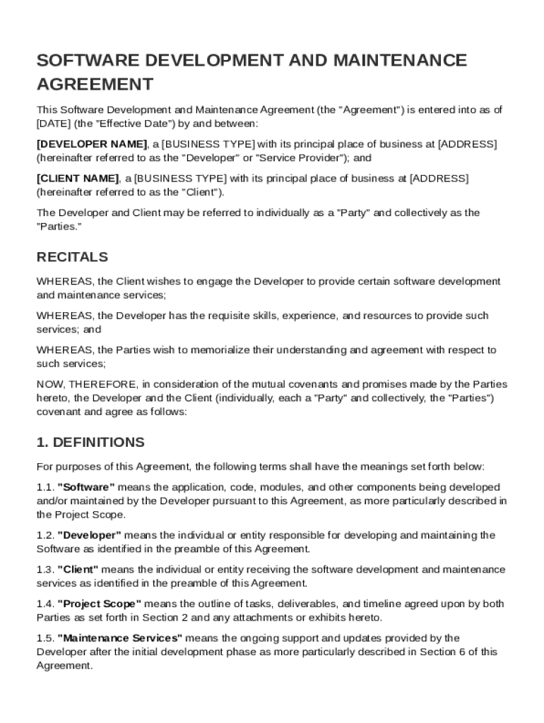 Comprehensive Guide to Software Development and Maintenance Agreement Template