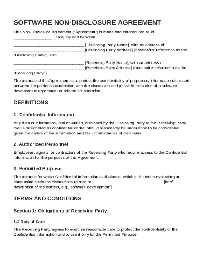 Comprehensive Guide to Software Non-Disclosure Agreement Template Form
