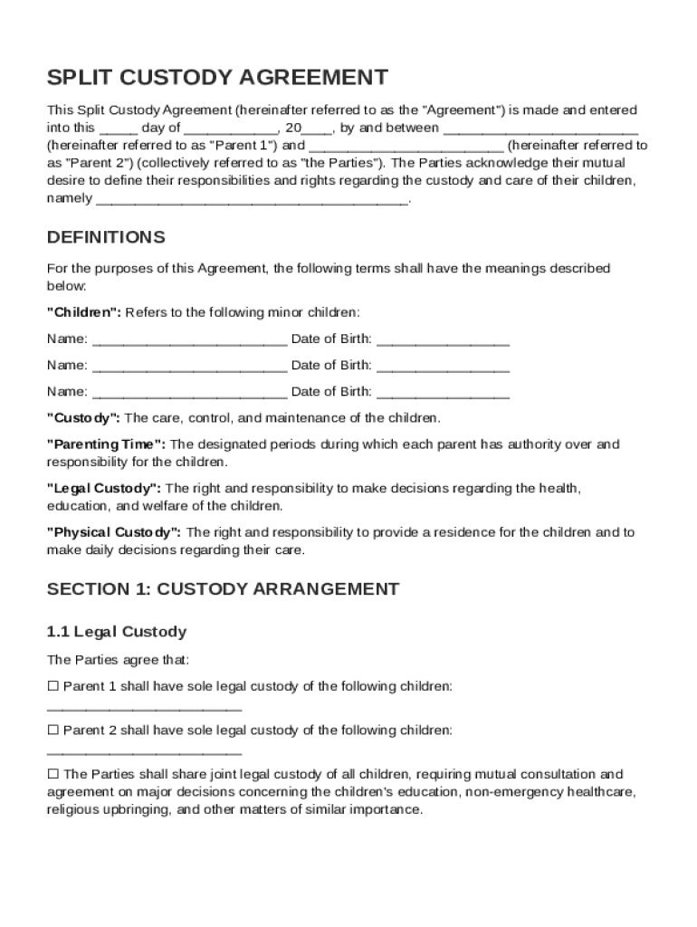 What is Split Custody Agreement Template