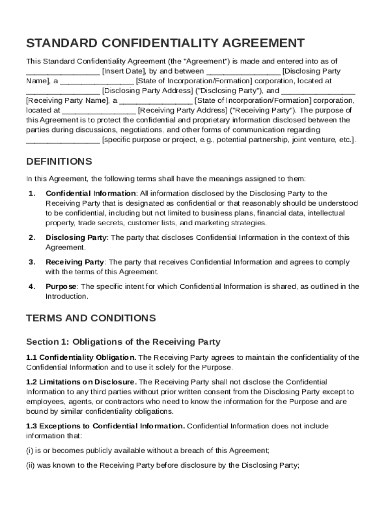 Comprehensive Guide to the Standard Confidentiality Agreement Template on pdfFiller