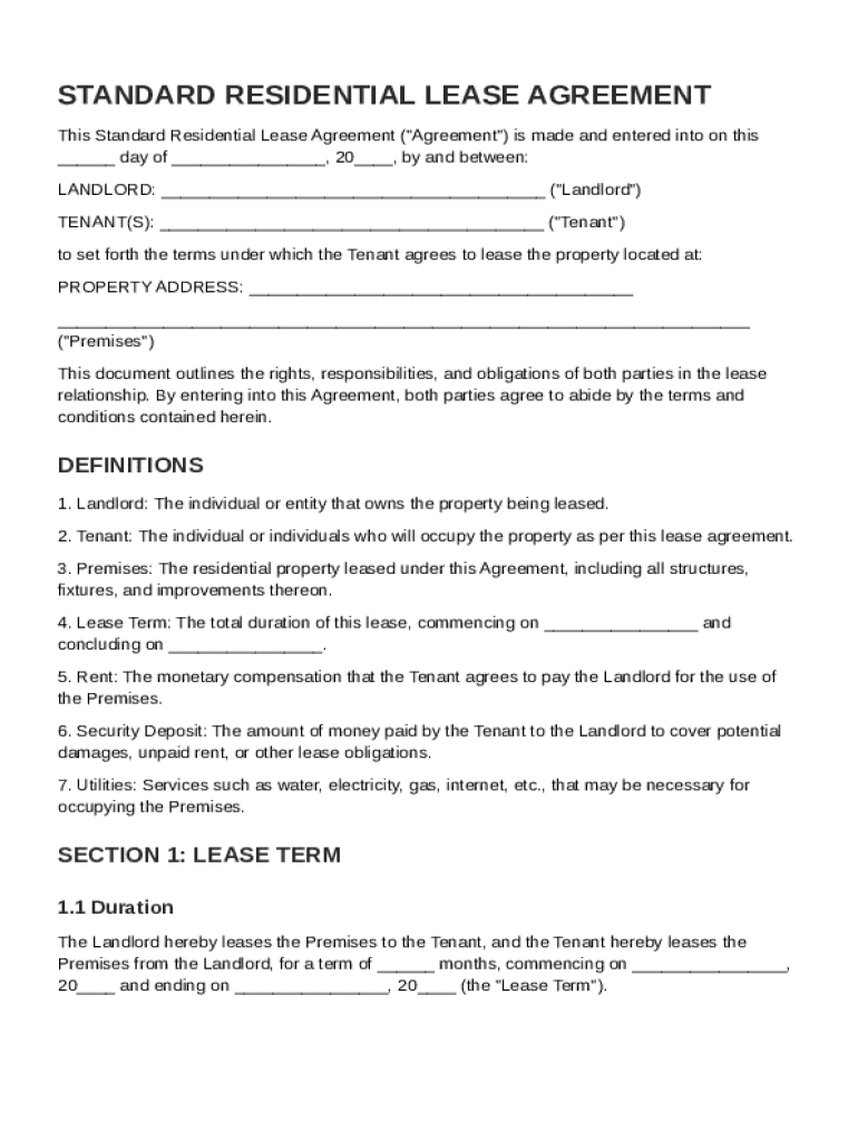 Comprehensive Guide to Standard Residential Lease Agreement Template on pdfFiller