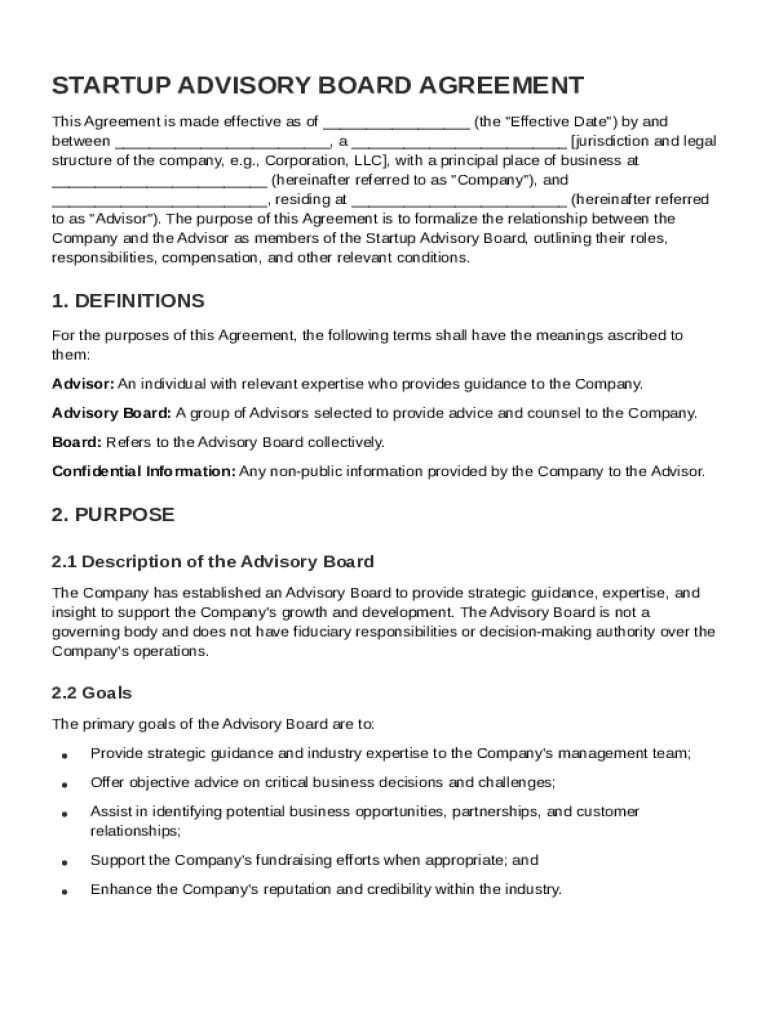 Filling out the Startup Advisory Board Agreement Template correctly is crucial for establishing clear roles and expectations. Here's the best way to do it: