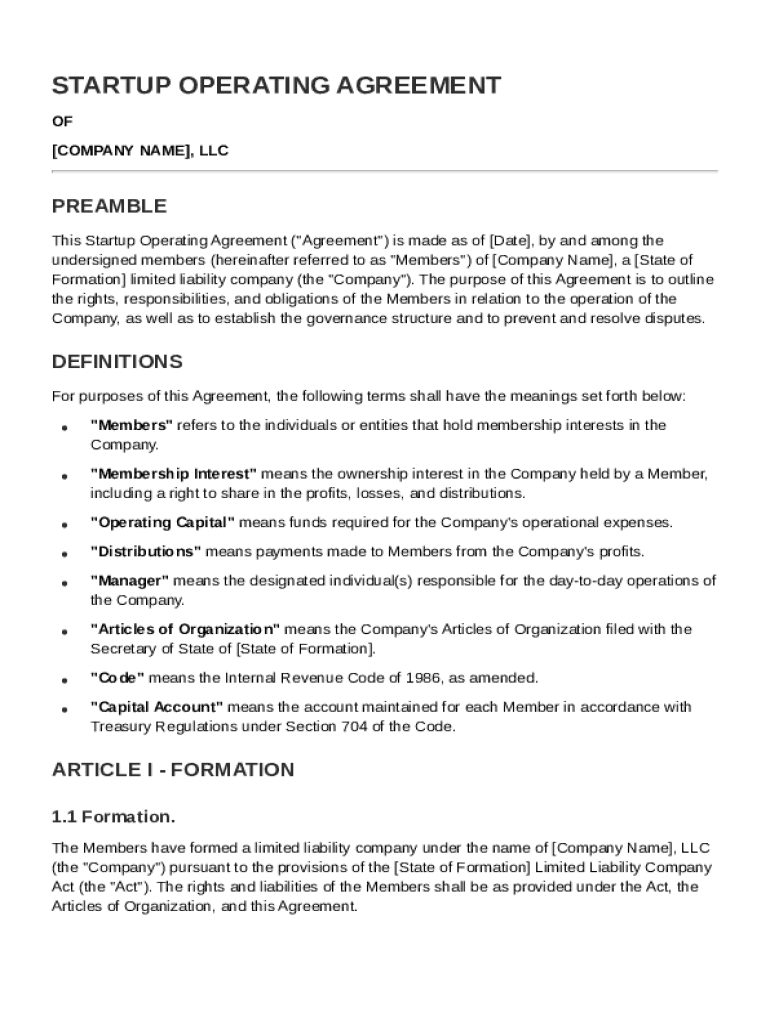 Startup Operating Agreement Guide on pdfFiller