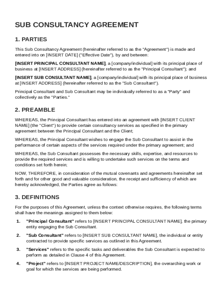 This section covers the fundamental components of a Sub Consultancy Agreement Template, including: