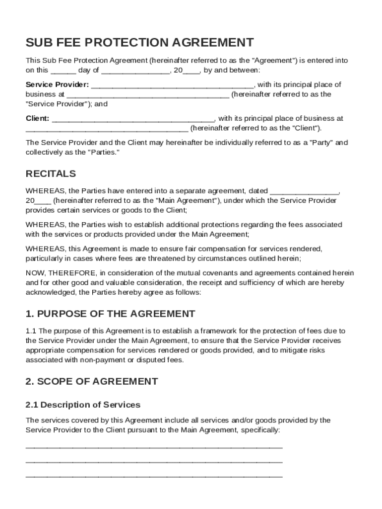Understanding the structure of the Sub Fee Protection Agreement is crucial for both service providers and clients. The agreement typically begins with identifying the parties involved followed by the context and purpose of the contract.