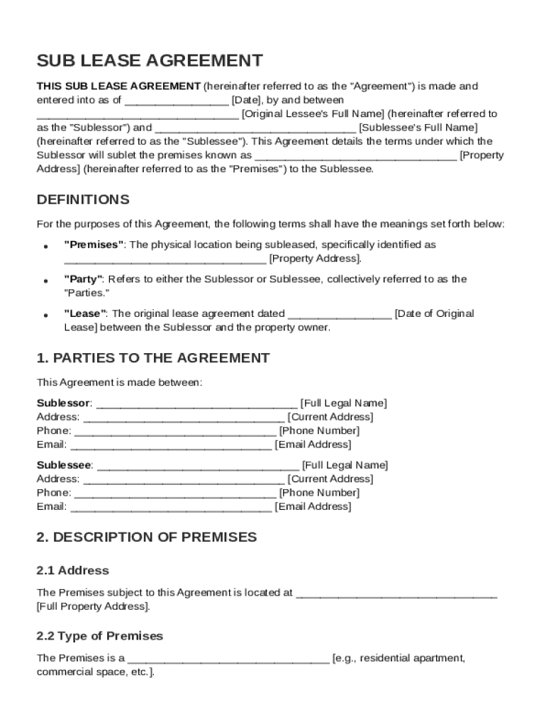This section must clearly define the sublessor and sublessee, including names and contact information.