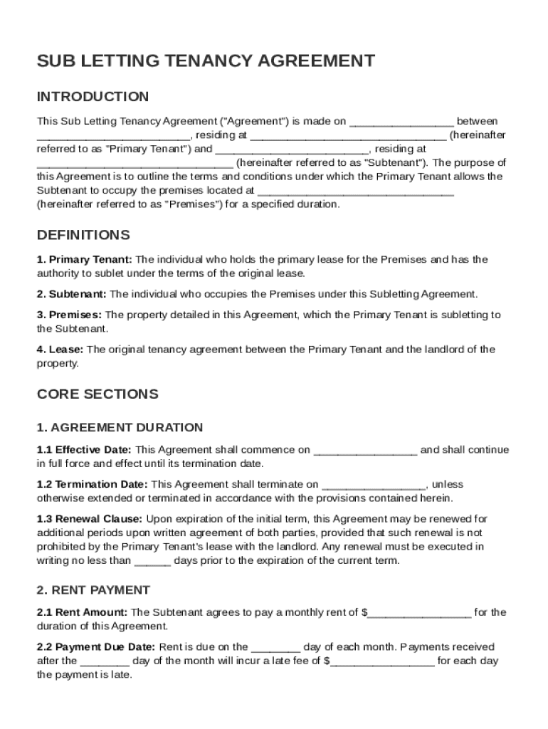 A comprehensive Sub Letting Tenancy Agreement should clearly define its terms to minimize disputes. Essential components include the agreement's effective date, duration, and specific termination details.