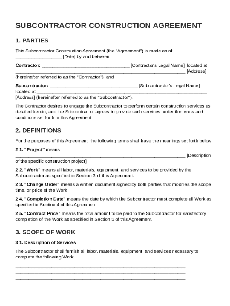 How to Create a Subcontractor Construction Agreement Template Form: A Comprehensive Guide