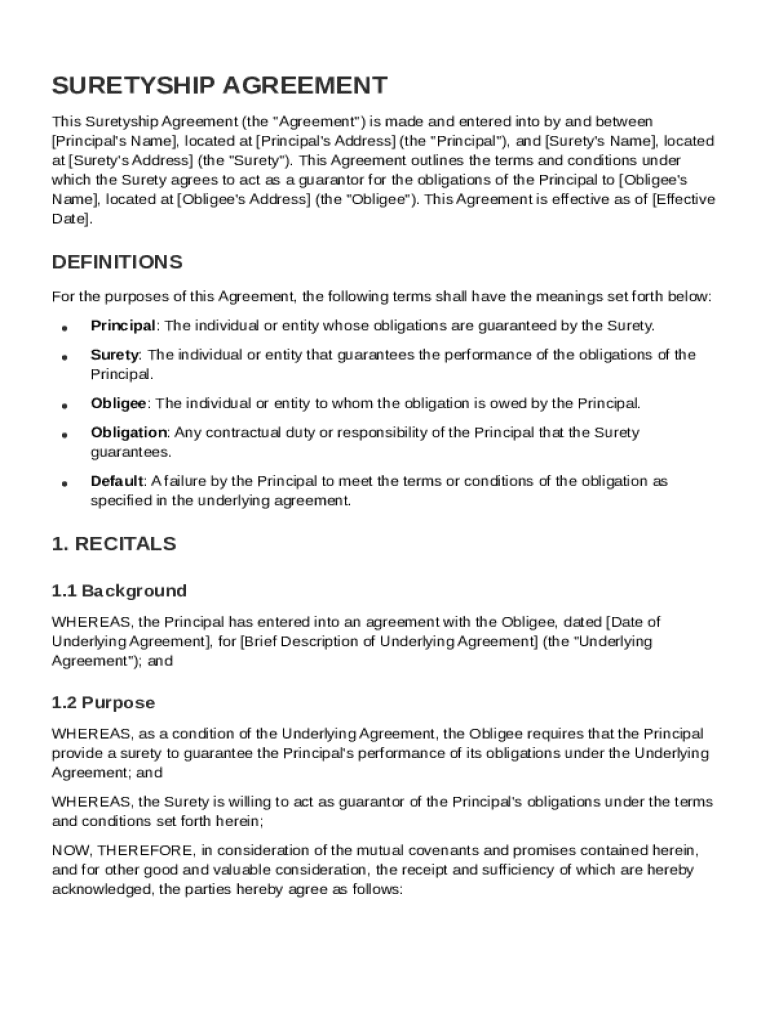 Comprehensive Guide to Suretyship Agreement Template Form