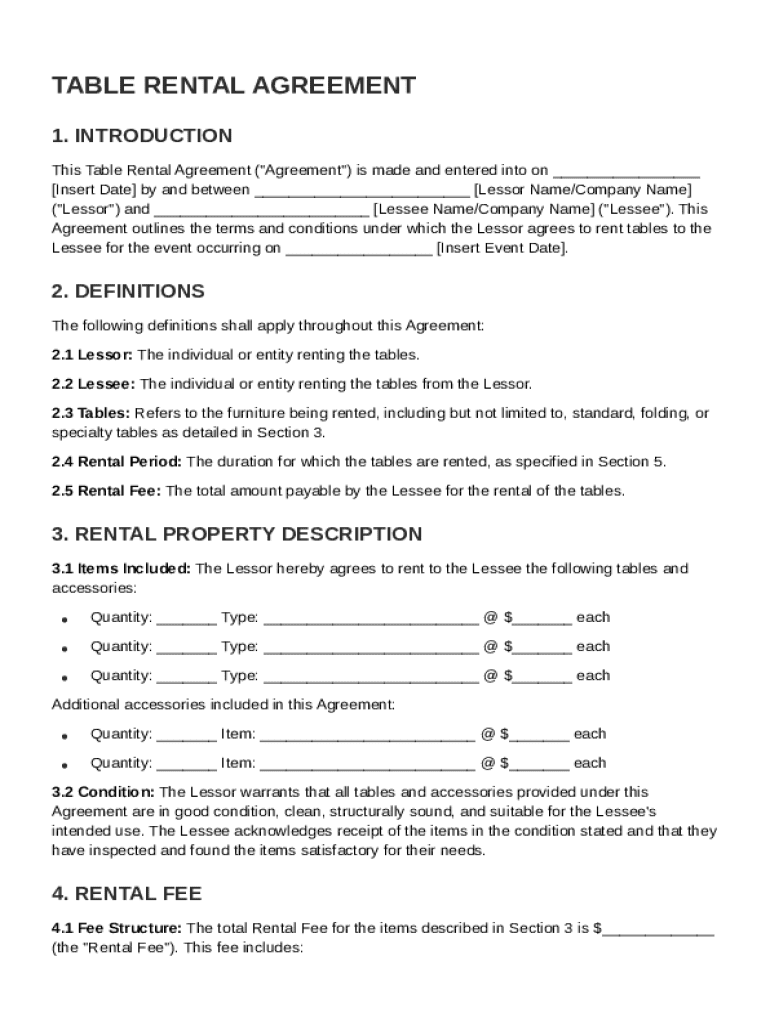 Table Rental Agreement Template Form: A Comprehensive Guide