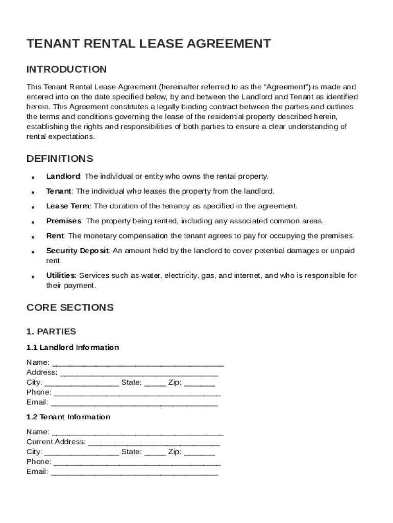 A tenant rental lease agreement is a legal document that outlines the terms and conditions between a landlord and a tenant regarding the rental of a property. Its primary purpose is to clarify responsibilities and protections for both parties in the leasing arrangement.