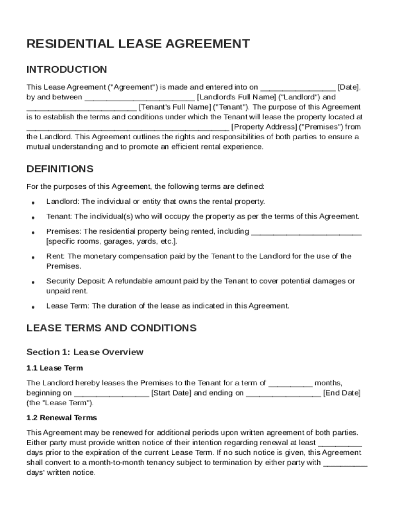 A Comprehensive Guide to the Tenants Lease Agreement Template Form
