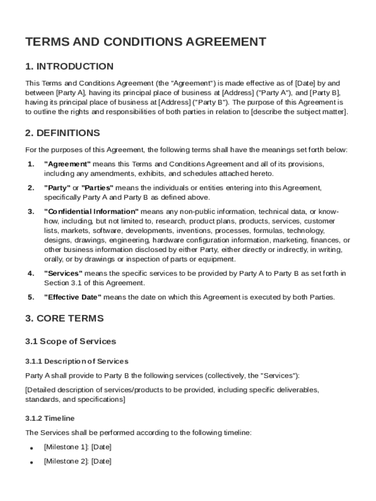 Agreement terms and conditions is a document that outlines the rights and responsibilities between two or more parties. This contract aims to ensure that both parties agree on what each party is responsible for, how they will be compensated, and when the contract expires.