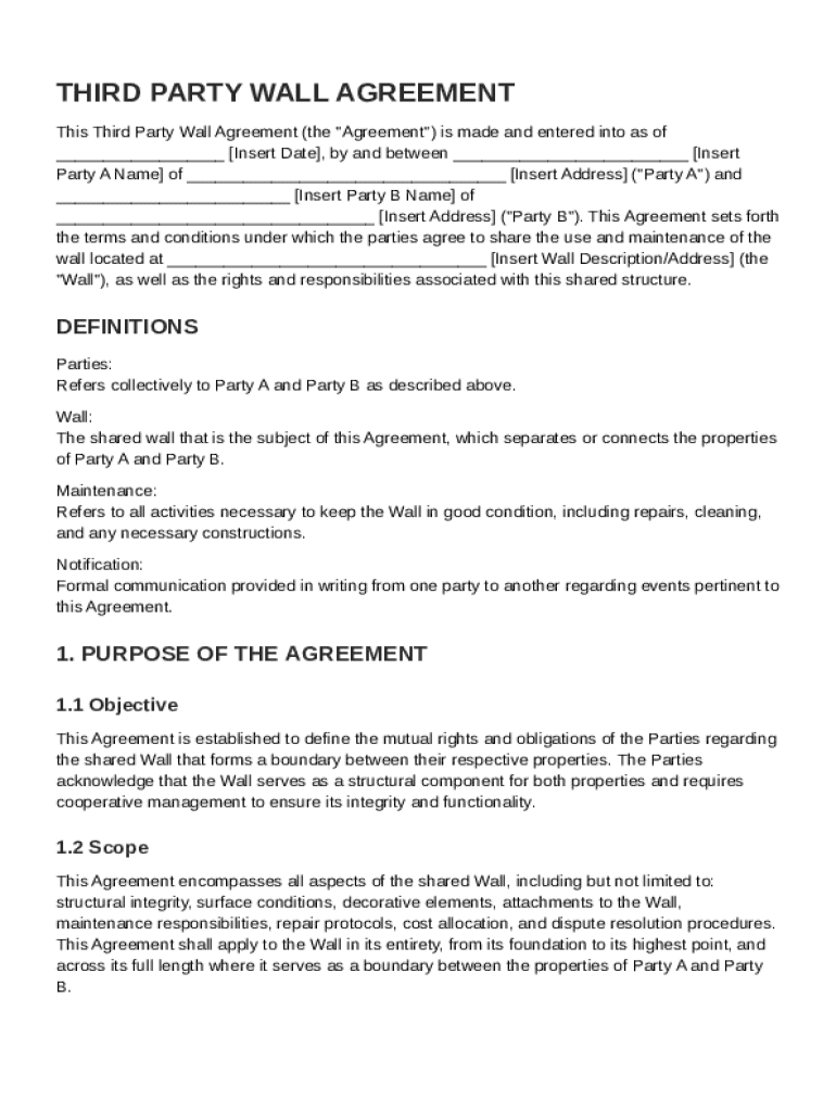 Filling out a Third Party Wall Agreement Template form is essential for individuals or parties sharing a boundary wall. This guide provides you with comprehensive insights, tools, and instructions for drafting this legal document accurately. By understanding its components and processes, you'll ensure a well-structured agreement that maintains harmony between neighbors while properly defining rights and responsibilities.