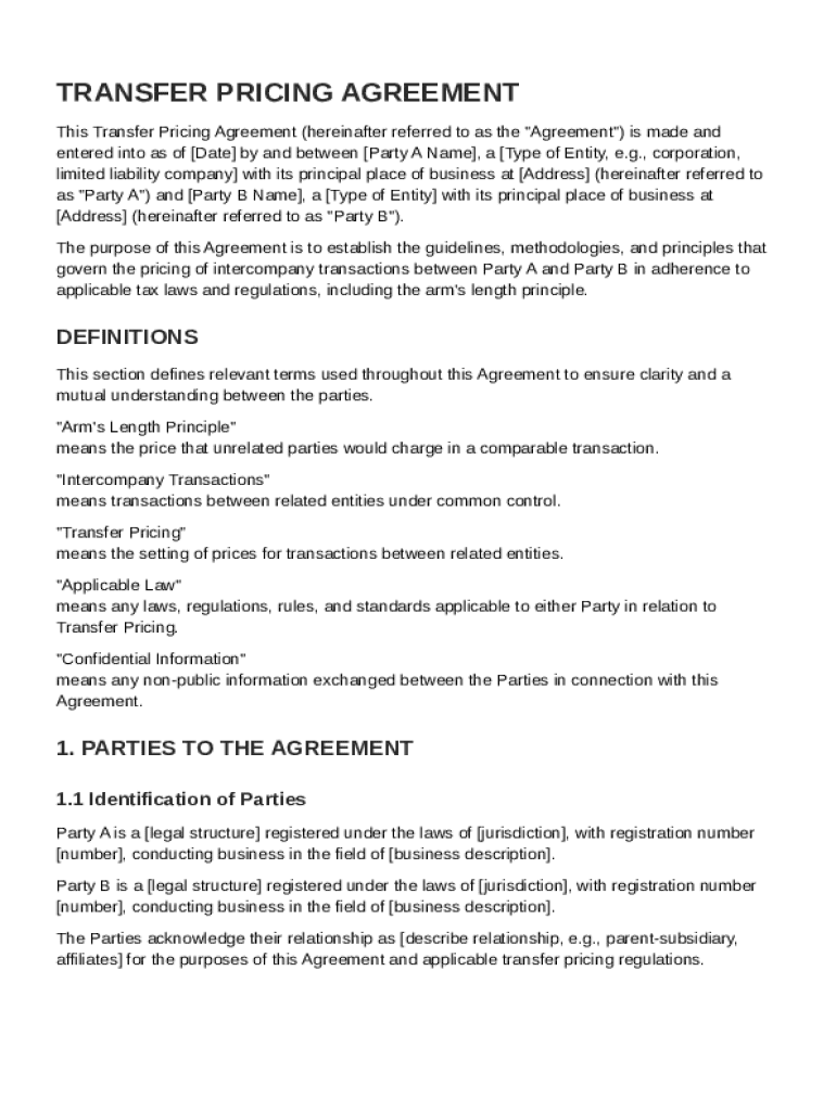 Comprehensive guide on the Transfer Pricing Agreement Template form