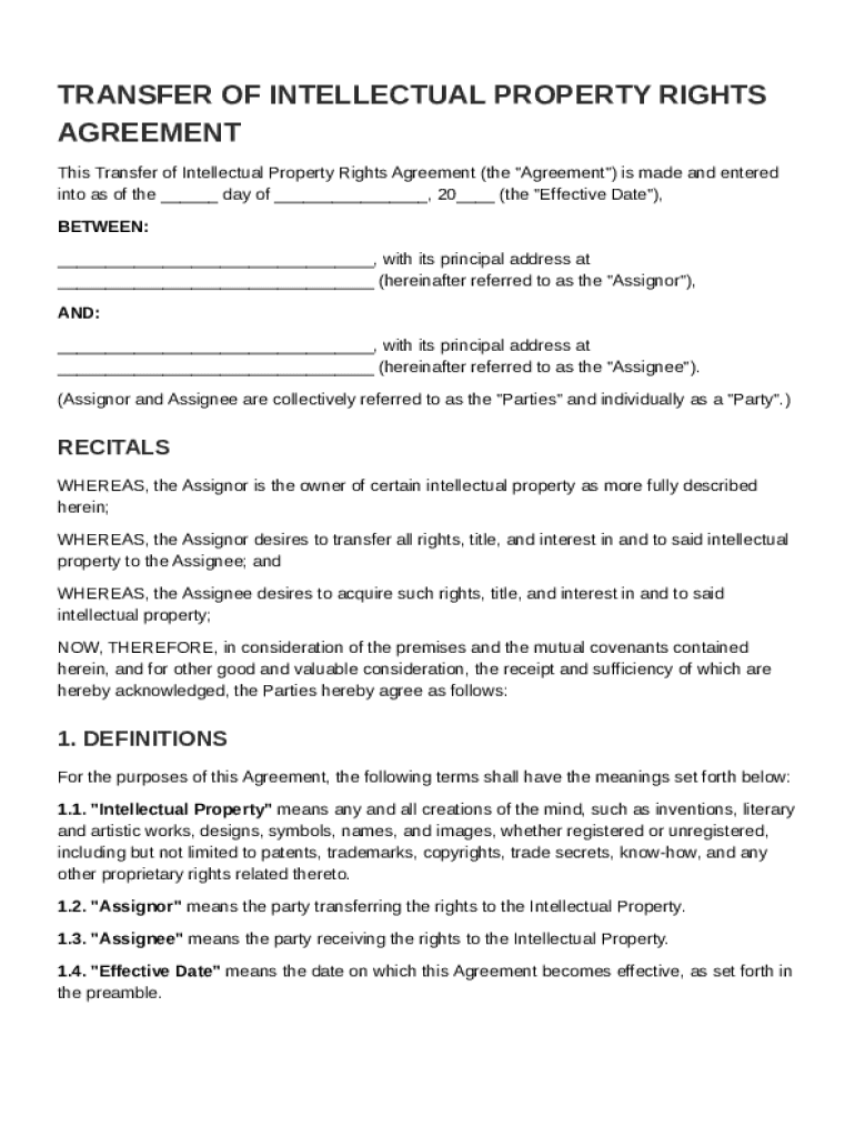 Transfer of Intellectual Property Rights Agreement Template free printable template
