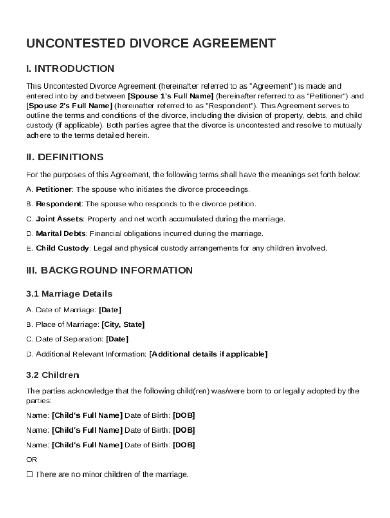 Uncontested Divorce Agreement Template on pdfFiller