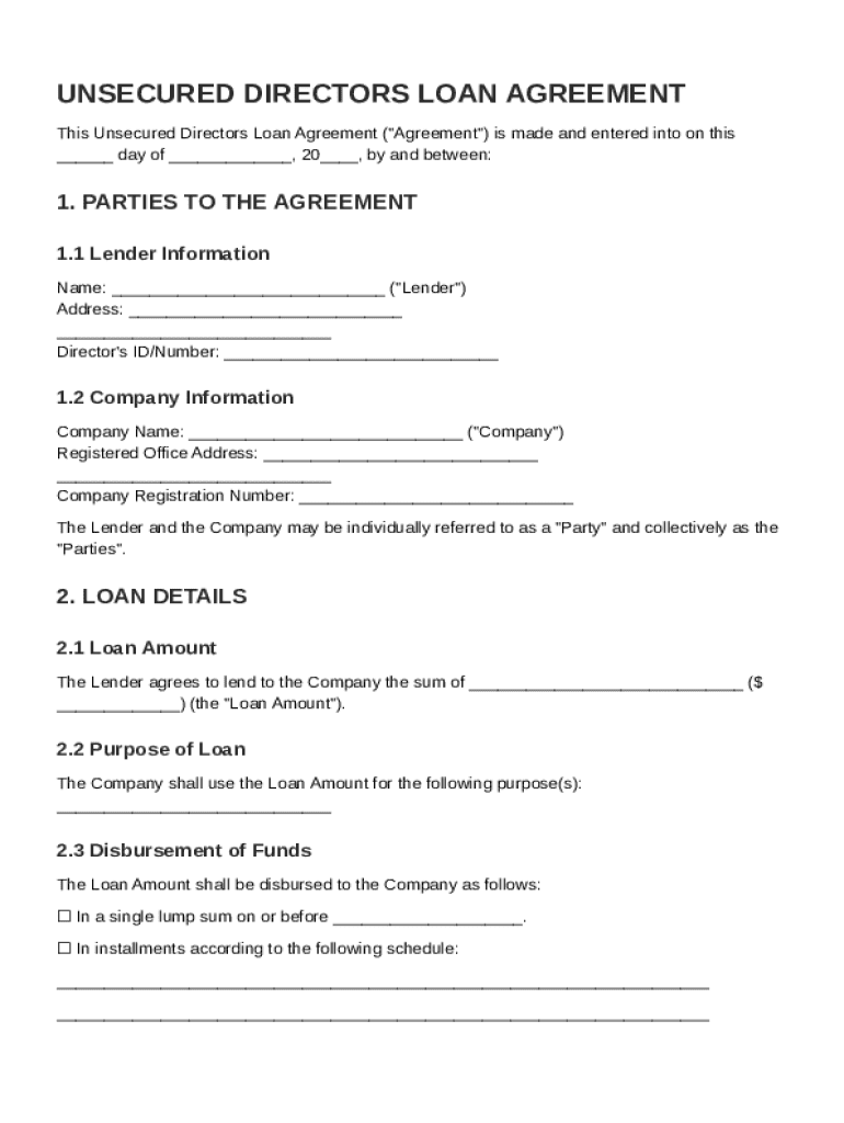 Unsecured Directors Loan Agreement: A Comprehensive Guide