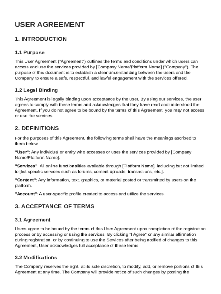 User agreements are essential documents that define the rights and responsibilities of users before they engage with a service. They lay the groundwork for legal expectations and ensure transparency between the provider and users.