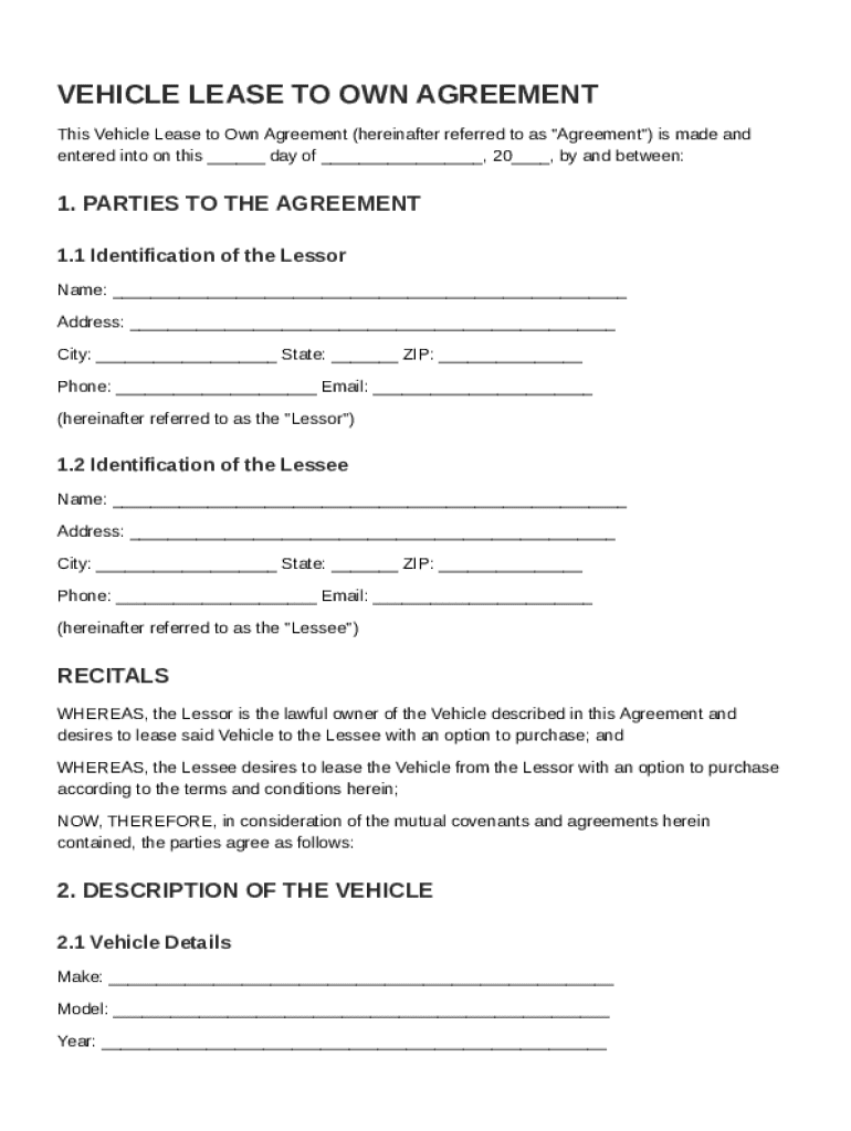 Vehicle Lease to Own Agreement Template on pdfFiller