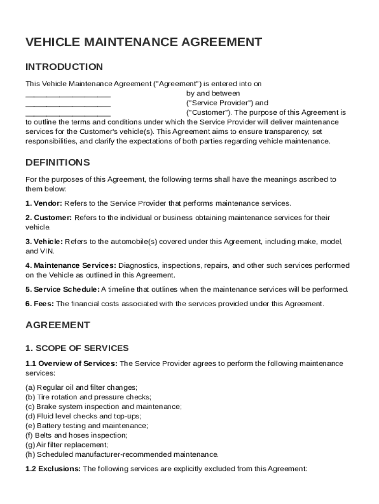 Vehicle maintenance agreement template form overview