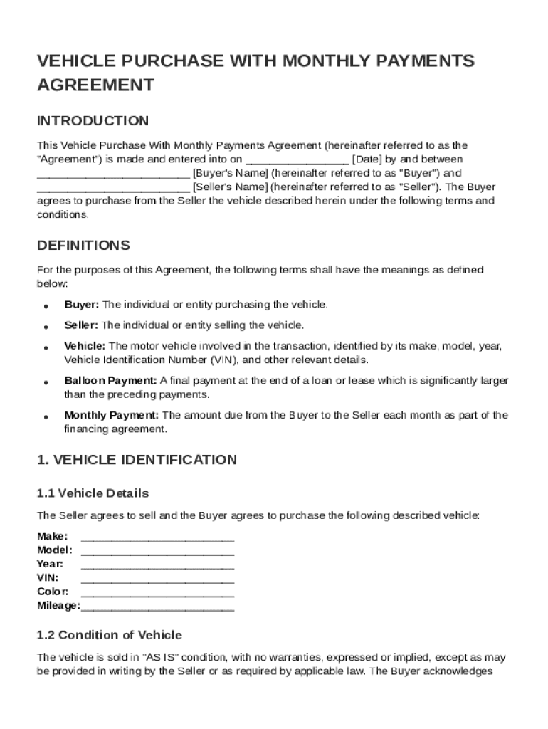 What is Vehicle Purchase With Monthly Payments Agreement Template