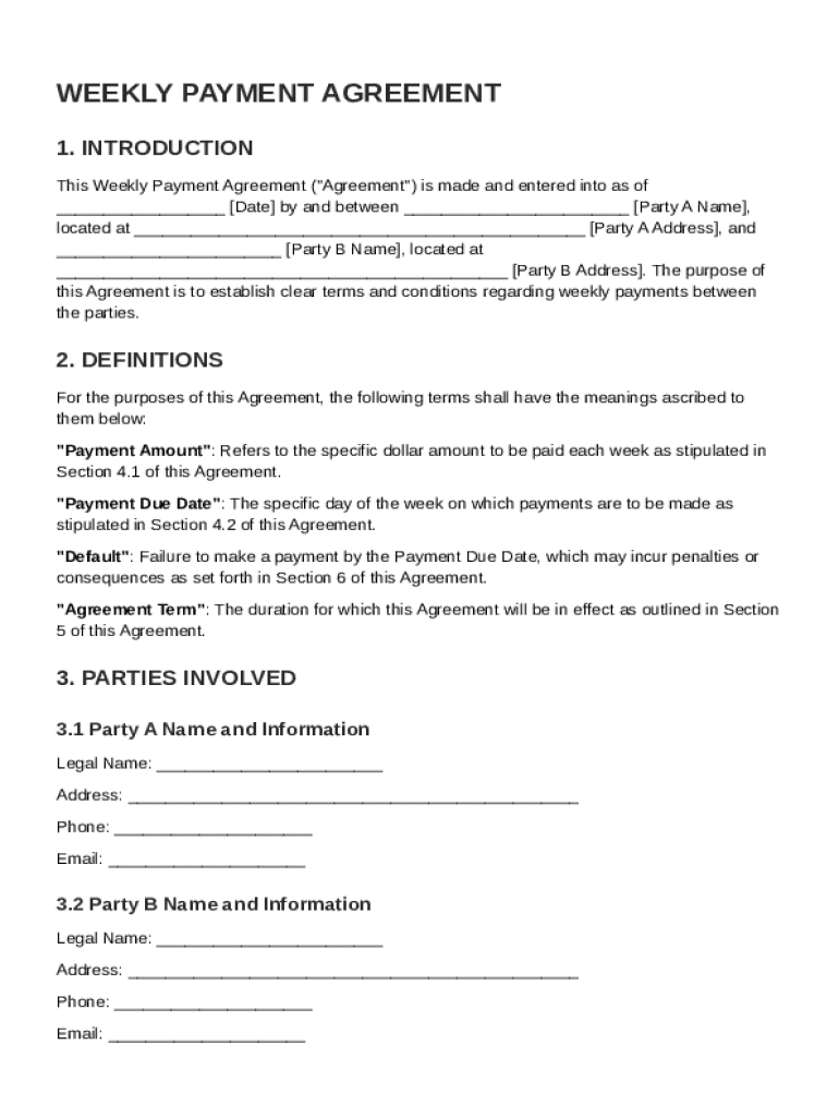 Comprehensive Guide to Weekly Payment Agreement Template Form