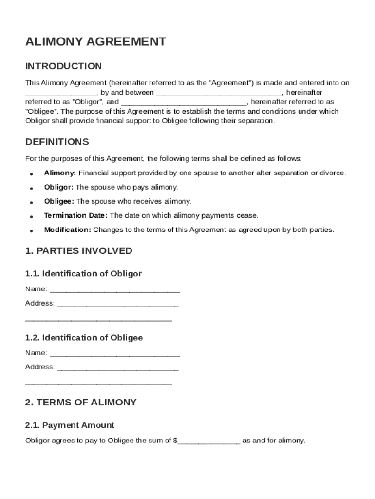 Comprehensive Guide to Alimony Contract Template Form