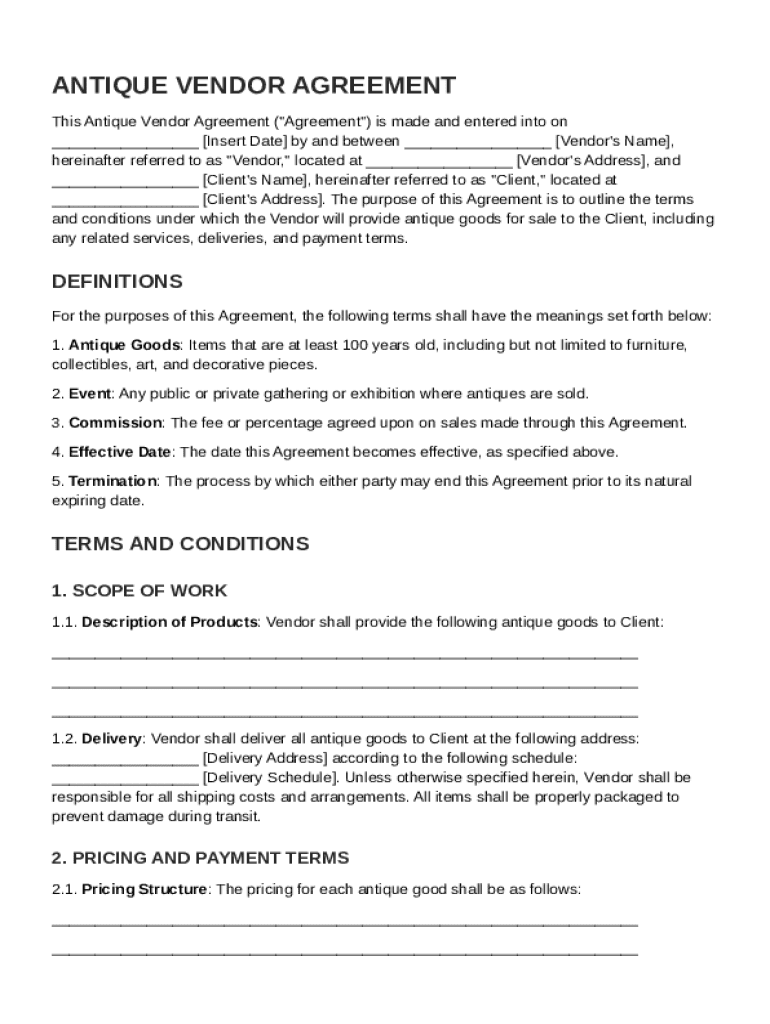 Antique Vendor Contract Template Guide