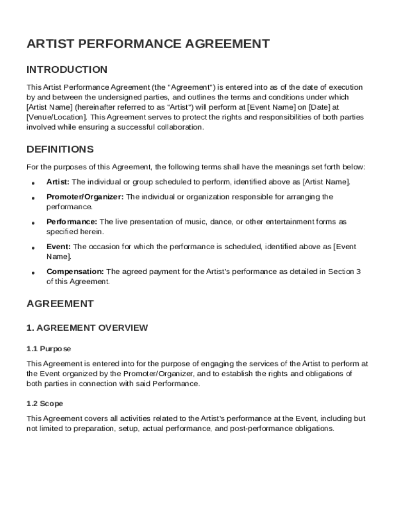 Comprehensive Guide to the Artist Performance Contract Template
