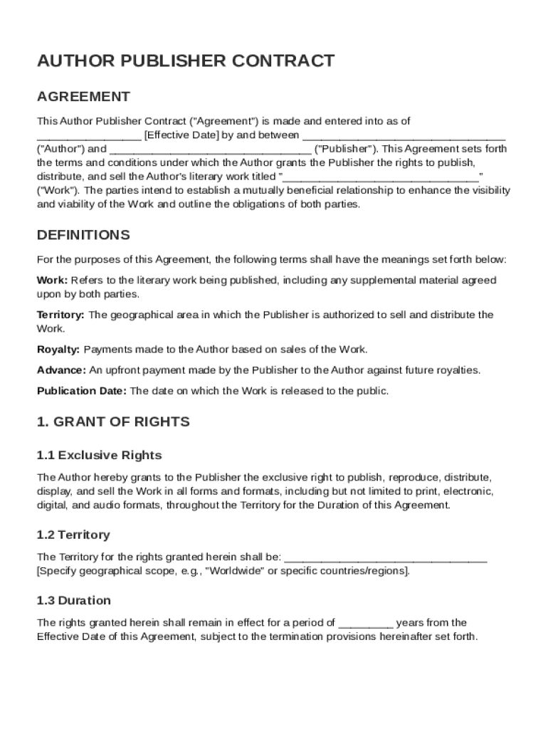 An Author Publisher Contract is a legal agreement that defines the relationship between an author and a publisher. It outlines the terms and conditions under which the author grants rights to the publisher in exchange for royalties and other considerations. Understanding this contract is crucial for navigating the publishing landscape.