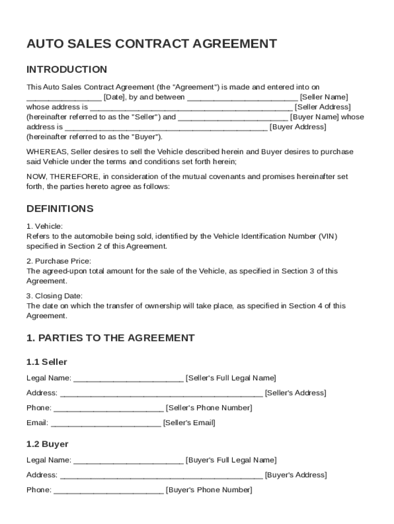 The effectiveness of an auto sales contract largely hinges on its key components. Below are the essential elements that every seller and buyer should include.